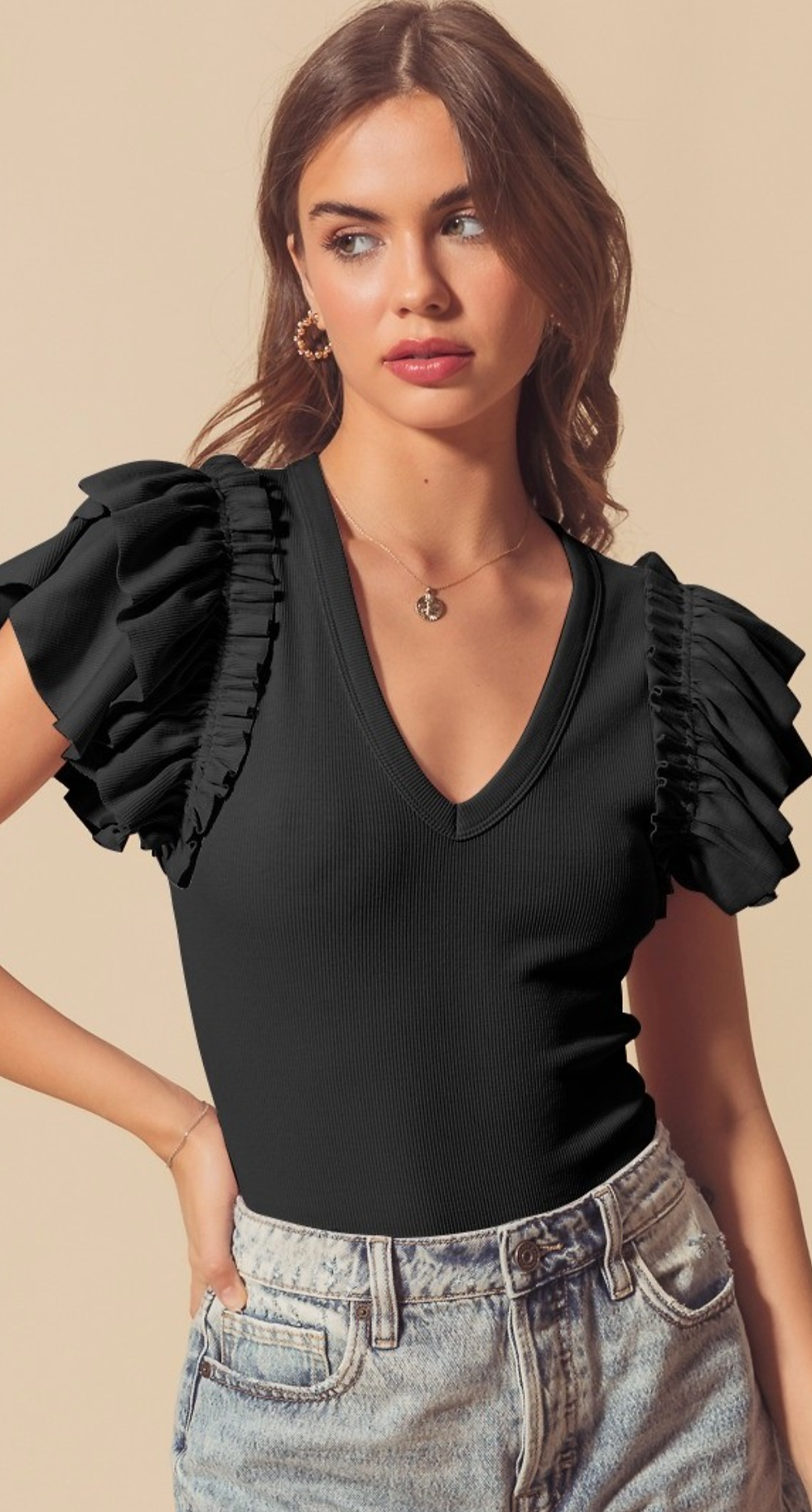Ruffle Bodysuit in Midnight