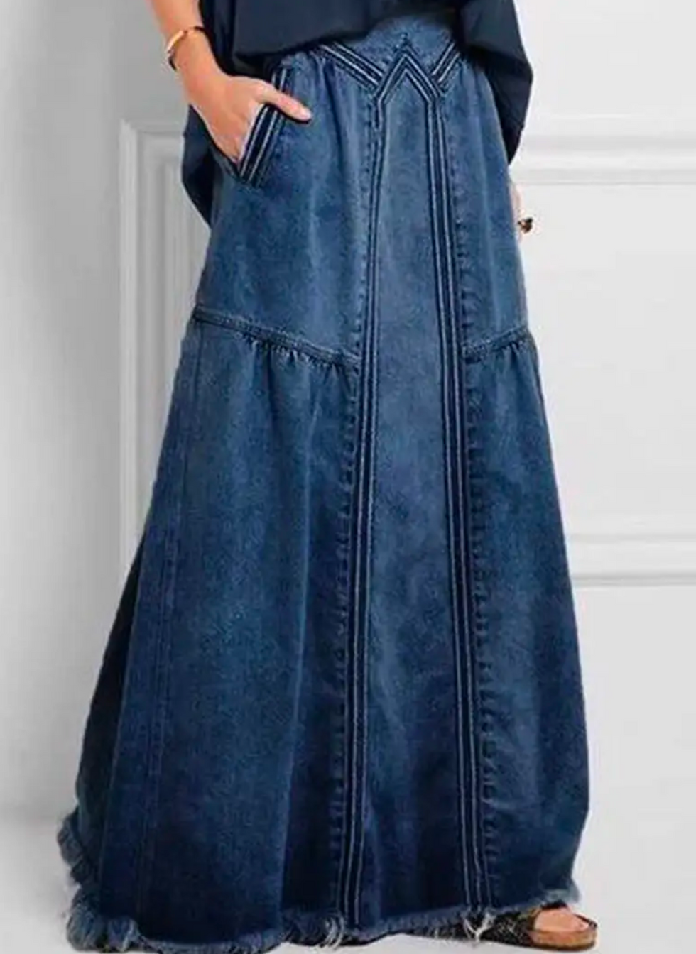 Drop Waist Denim Maxi Skirt